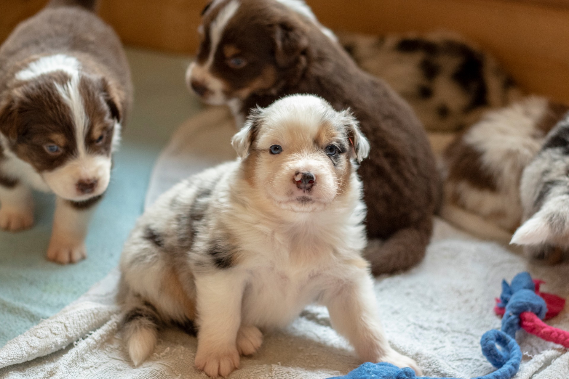 Všechna štěňátka DOV prostá v 6. týdnech věku.